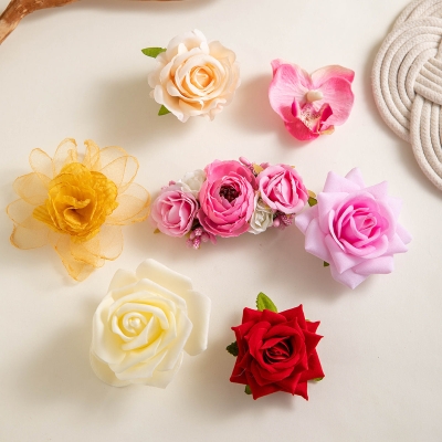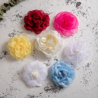 Colorful Rose and Camellia Hair Clips - Korean-Style Fabric Flower Hairpins