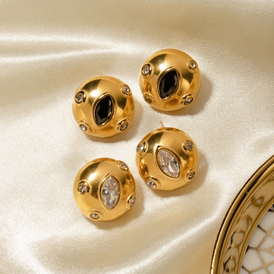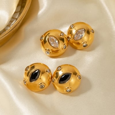18K Gold Plated Stainless Steel Chubby Zircon Inlaid Teardrop Earrings - Vintage Design Jewelry for Women