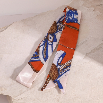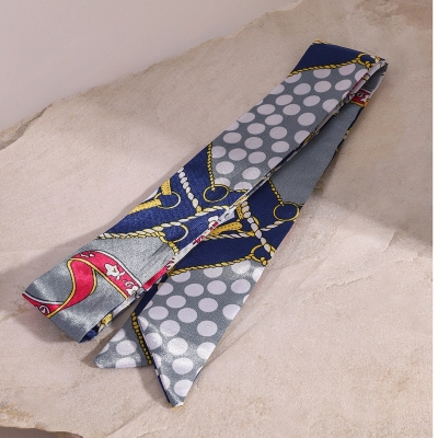 Red and white color matching long hair band, versatile printed ribbon
