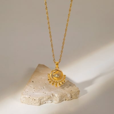 18K Gold-Plated Oval Zircon Eye Pendant Necklace - Stainless Steel Jewelry with Round Cubic Zirconia Pendant