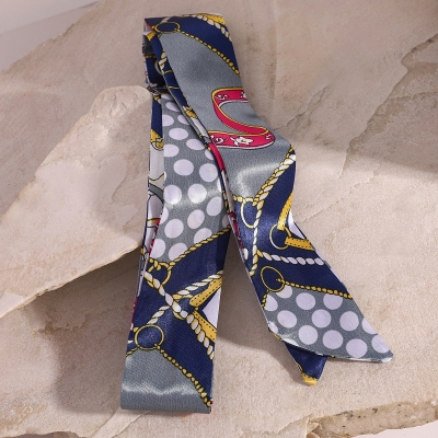 Blue and white color matching retro headband, French tie ribbon