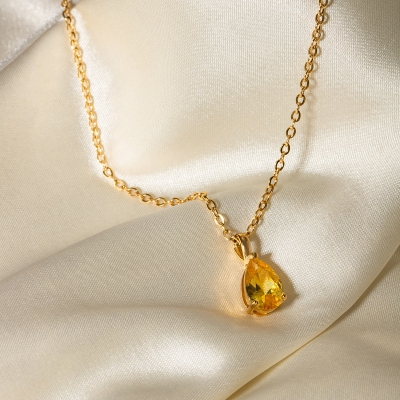 18K Gold-Plated November Birthstone Pendant Necklace - Yellow Zircon Water Drop Pendant for Women