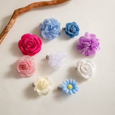 Korean-Style Colorful Daisy and Rose Hair Clips - Sweet Fabric Flower Hair Pins