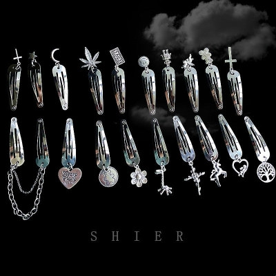 Silver metal side clip, moon cross hairpin