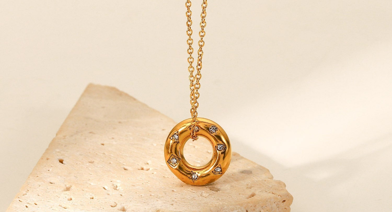 18K Gold-Plated Czech Zircon Pendant Necklace - Trendy Titanium Steel Geometric Design
